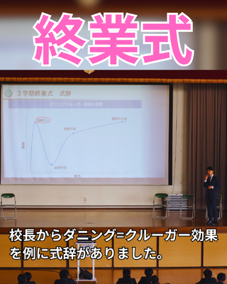 校長先生の式辞では、 「ダニング=クルーガー効果」の曲線をもとに、 “諦めない心を持つことの大切さ”についてお話がありました。