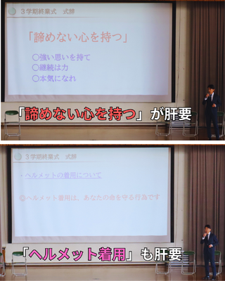 また、命を守るためのヘルメット着用の重要性についても、 改めてお話がありました。 “当たり前”を大切に、安全第一で新学期を迎えましょう