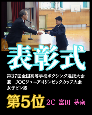 1ツ星春休みに大活躍!ボクシング部・2C 富田さんが表彰されました! 次の試合も期待してます!王冠