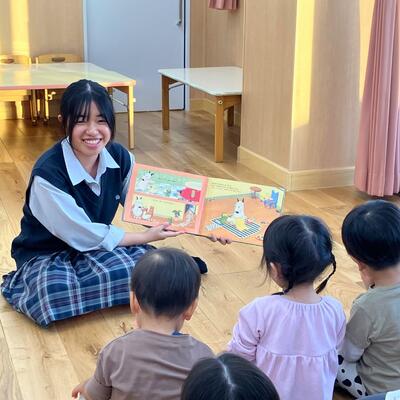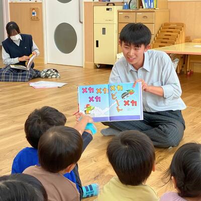 こまくさ保育園訪問(JRC部活動報告) JRC部員が本校近隣のこまくさ保育園にお邪魔して、 絵本の読み聞かせと一緒に遊ぶ体験をさせていただきました
